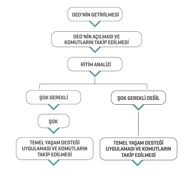 Acil tıp sisteminin hızlı aktivasyonu (112’nin aranması) ve OED’nin erken kullanımı, yaşam zincirinin en kritik basamaklarındandır.