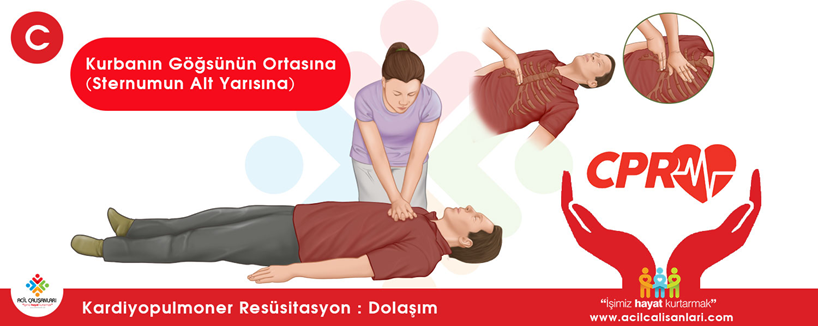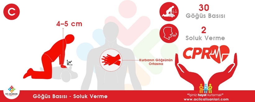 İlk olarak C (Circulation): Göğüs kompresyonları,