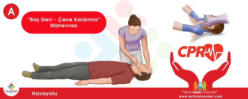 A (Airway): Baş geri – çene kaldırma veya çene itme ile hava yolu açılır.