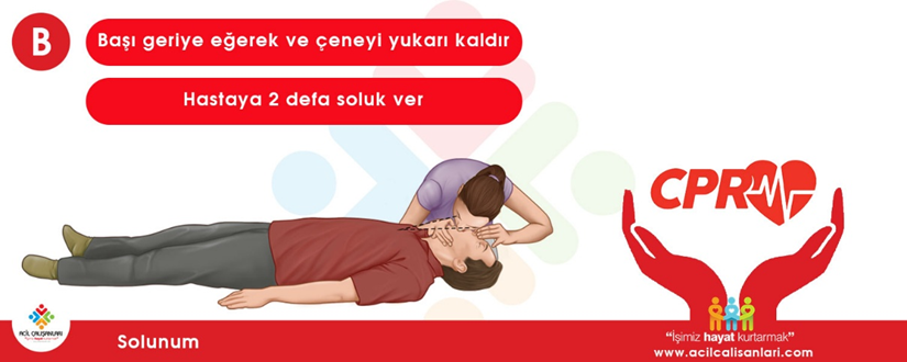 B (Breathing): 30:2 oranında kurtarıcı soluklar verilir; sağlık çalışanları ambu ile solutma yapar.