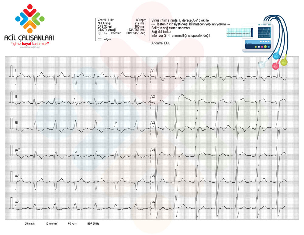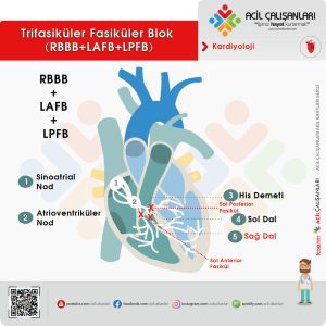 Hastada RBBB+ Sol posterior fasiküler blok + 1. derece AV blok olduğu için inkomplet trsifasiküler bolk görülmektedir. Trifasiküler blok, tam kalp bloğunun öncüsüdür ve birbirini izleyen RBB bloğu (RBBB) ve LBB bloğu (LBBB) veya atımdan atıma değişen LAF bloğu veya LPF bloğu ile RBBB olarak ortaya çıkabilir.