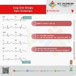 Sağ dal bloğu (RBBB: Right Bundle Branch Block), kalbimizin iletim sisteminin bloklanması sonucu geciken elektriksel aktivite yüzünden sağ ventrikül depolarizasyonunda gecikmeler ortaya çıkaran bir duruma verilen isimdir. Geçiken bu elektriksel aktivite sonucunda kalbin sağ tarafını gösteren sağ prekordiyal derivasyonlarda (V1-V2-V3) ventriküllerin depolarizasyonunu gösteren QRS kompleksinde anormallikler olarak karşımıza çıkar. Sağ dal bloğu, altta yatan birçok nedene bağlı olarak görülebilirken, bazı durumlarda sağlıklı bireylerde de karşımıza çıkabilmektedir.