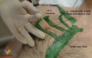 A) A- Acil iğne dekompresyonu: sağ 4. İKA orta aksiller hat