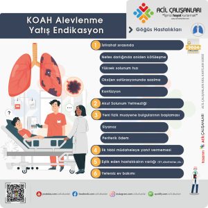 Bu endikasyonlar, KOAH alevlenmesi olan hastalarda ciddi komplikasyonları önlemek ve etkili tedavi sağlamak amacıyla hastaneye yatış kararının verilmesinde kritik rol oynar. Her KOAH alevlenmesi durumunda hastanın bireysel durumu ve mevcut semptomları göz önünde bulundurularak değerlendirme yapılmalıdır.