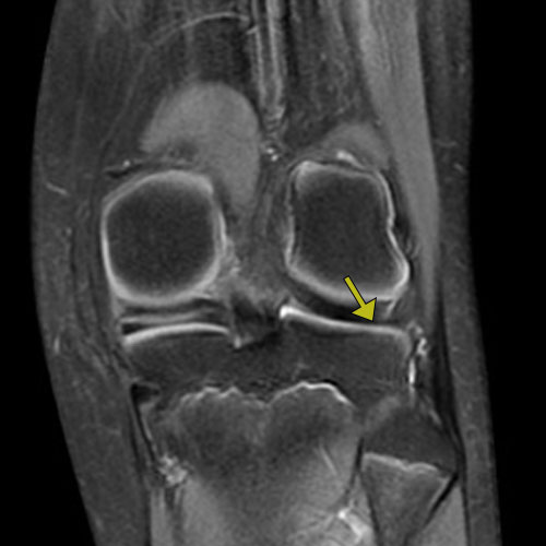 Aşağıda verilen sol diz MR görüntüsünde ok ile işaretli anatomik yapı aşağıdakilerden hangisidir?