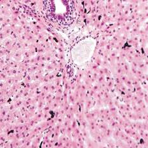 Bir deney hayvanına karbon partikül içerikli vital boya uygulamasından beş saat sonra karaciğerden alınan doku kesiti, hematoksilen-eozin ile boyanıp ışık mikroskobunda inceleniyor. (Atom ağırlıkları; C=12,0 g/moL, H=1,0 g/moL, O=16,0 g/moL, N=14,0 g/moL)