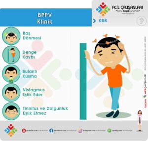 BPVV çoğunlukla hasta yatağa yattığında veya yataktan kalktığında, yatakta döndüğünde, başını arkaya eğdiğinde veya öne doğru eğildiğinde ortaya çıkmaktadır. BPPV'li hastalar ara sıra baş dönmesi ve dengesizlik hissi yaşadıklarını bildirseler de dikkatli bir anamnez alındığında genellikle görülen semptomların baş pozisyonundaki değişikliklerle daha da kötüleştiği bilinmektedir. Birden çok bireyde mide bulantısı ve bunun yanında kusma da gözlemlenmektedir. BPPV ataklarının genelde belirli bir nedeni olmadığı bilinmektedir. Bireylerde kafa travması, uzun süre yaslanmış pozisyon veya çeşitli iç kulak rahatsızlıkları ile ilişkilendirilebilir. Bireylerde gözlemlenen yıllık tekrarlanma oranı yaklaşık %15 düzeyindedir. Öncelikle BPPV hastalığın tanısı dikkatli bir anamnez ve fizik muayene ve spesifik pozisyonel manevralar ile ortaya çıkarılan nistagmus özelliklerine dayanmaktadır. Tanıda rutin görüntülemenin (BT-MR) yeri yoktur. Tanı nistagmus atağını ortaya çıkaran manevralar kullanılır. BPPV hastalarında medikal ilaç tedavisi önerilmemektedir. Ama vertigo tedavisinde genel acil yaklaşımı olarak medikal ilaç (dramamine-diazepam-nootropil) tedavisi yapıldığı için BPPV tedavisinde de bu ilaçlar yaygın kullanılmaktadır. BPPV hastaları için en uygun tedavi yaklaşımı kanalit repozisyon tekniklerinin, Epley ve Semont manevralarının uygulanmasıdır. Ancak medikal tedavi şiddetli anksiyetesi veya bulantı kusması olan hastalarda manevra öncesi hastanın konforunu arttırmak için yapılabilir.