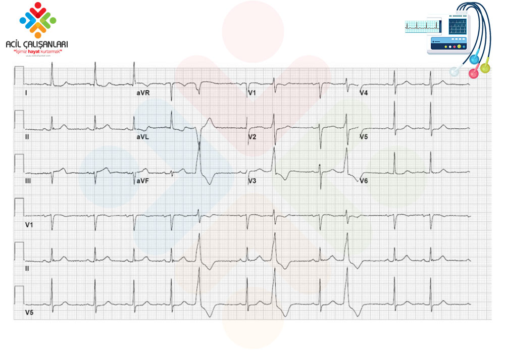 - Sağ dal bloğu, bradikardi veya tam kalp bloğu gibi iletim anormallikleri de EKG’de kendini gösterebilir ancak spesifik olmayabilir.