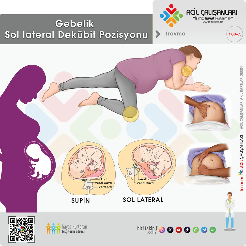 Hastadaki hipotansif durum muhtemelen genişlemiş uterusun veca cava inferiora bası yapması sonucunda oluşmaktadır. Bunun nedeni ise her travma hastasında olduğu gibi hastamızın da düz travma tahtasına supin poziyonda yatırılmasından kaynaklanmaktadır. Gebeler eğer supin pozisyonda yatırılırsa genişlemiş ve ağırlaşmış uterus vena kavanın çökmesine neden olur böylece kalbe ve genel dolaşıma kan akışı dönüşünün engellenmesine neden olarak hipotansiyona yol açar. Gebelerde bu duruma aortokaval kompresyon sendromu (sırtüstü hipotansif sendrom) olarak adlandırılmaktadır. Hastada muhtemelen aortokaval kompresyon sendromu vardır ve böyle durumlarda sırt tahtasının yaklaşık 15 derece sol yan yatırılması vena cava inferior üzerindeki baskıyı azaltır. Böylece kardiak output attırılması sağlanır. Trendelenberg pozisyonu travma hastalarında aspirasyon riskini ve ventilasyon güçlüğünü daha da artırabilir. Bu yüzden yapılmamalıdır.