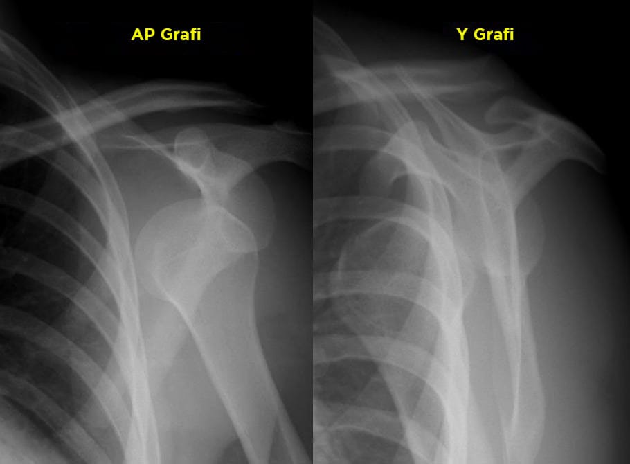 26 yaşında erkek hasta, futbol oynarken düşme sonrasında şiddetli omuz ağrısı nedeni ile acil servise başvuruyor. Hasta öyküsünde maç yaparken travma aldığını ve sonrasında yere düştüğünü, kolunu ağrıdan oynatamadığını belirtiyor. Hasta travma doktoru tarafından; GKS'u 15 Nabız: 80 atım/dk düzenli ; Ateşi 36,7 °C ; Solunum sayısı: 14/dk ; SpO2: 98 ; KŞ: 100 ve Kan Basıncı: 140/90 mm/Hg olarak değerlendiriliyor. Fizik muayenede; sol omuz hareketleri kısıtlı, hareketle ağrılı, omuz anteriorunda ele gelen sert şişlik mevcut, akromiyon lateral kenarı belirgin ayrıca hasta abdüksiyon ve internal rotasyona direnç gösteriyor. Nörolojik muayene normal olarak değerlendiriliyor. Acil hekimi hastadan aşağıda görülmekte olan omuz grafisini istiyor. Bu bilgilere göre bundan sonra hastaya uygulanacak en uygun yaklaşım ne olmalıdır?